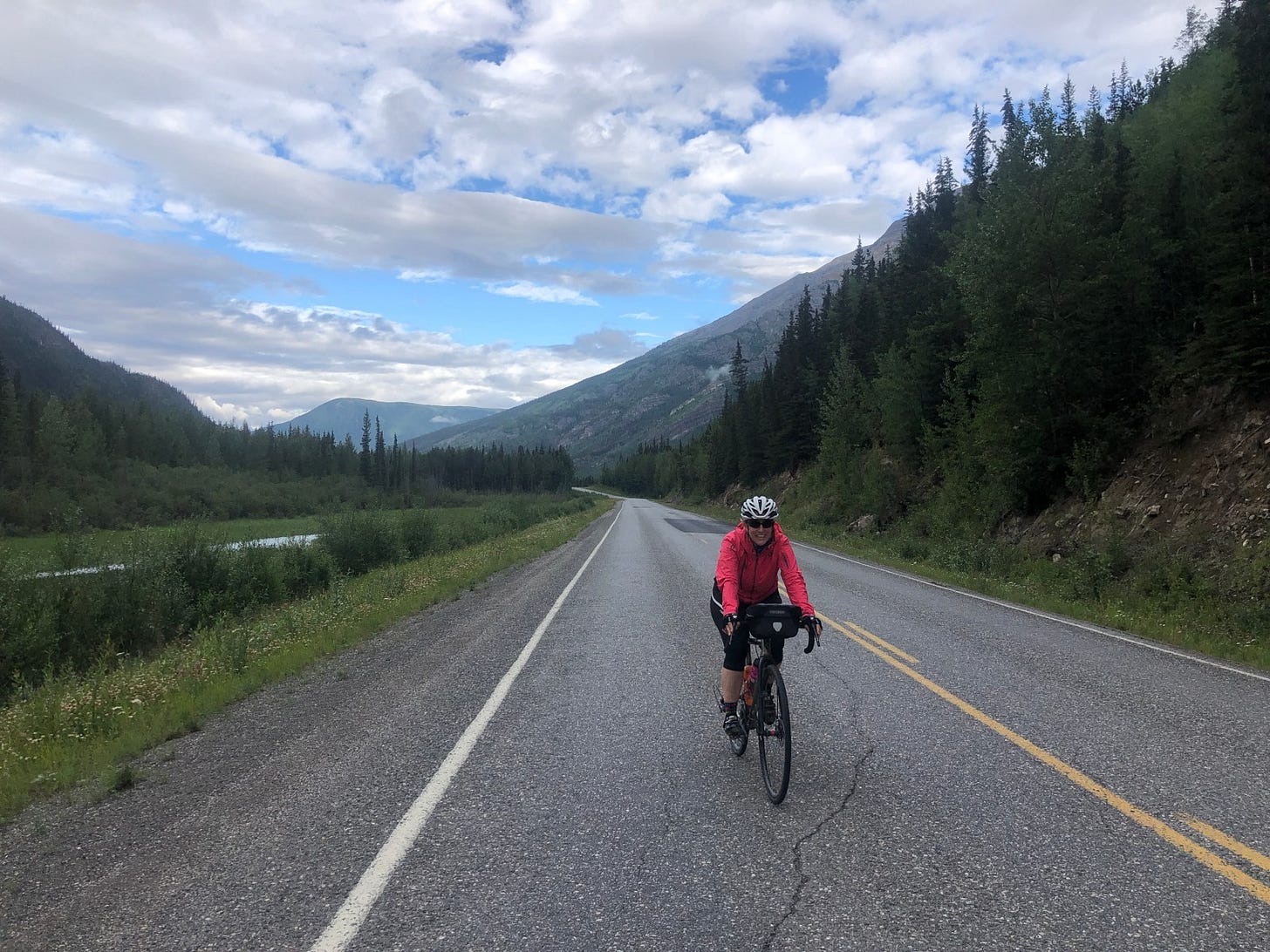 As for myself, to embark on this voyage is like stepping through a magic wardrobe into another world. I am in liminal space, the in between place where the road is a pumice stone scrubbing away the habits of daily life. I am in the moment. I am aware of place, the tundra wilderness of the Arctic, the pine forests of the north, the majesty of the mountains. I am aware of the shape and contour of the road with its cracks, debris and bumps. I am acutely attuned to sounds: the whoosh of the traffic, the logging trucks with their guttural roar, the harsh grinding of the pick-ups, the wind catching mobile homes. I have my destination in mind; an internal odometer tracks the kilometers flying by. I keep an ear cocked to signals of body and bike. Is the brake brushing against the rotor? Is the chain squeaking? Is that twinge in the knee momentary or a sign to ease up?